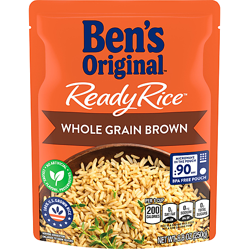 BEN'S ORIGINAL Ready Rice Whole Grain Brown Rice provides the delicious and wholesome taste of whole grain brown rice in just 90 seconds. This parboiled long grain brown rice delivers a chewy texture and nutty aroma that makes it the perfect addition to all your cooked rice recipes. Ready Rice comes in a BPA-free microwave rice pouch that eliminates prep and cleanup, making it easier than ever to create a tasty meal. All you have to do is microwave the rice pouch for 90 seconds or pour the contents into a skillet and heat thoroughly before serving. Great as a satisfying rice side dish or as part of a savory main course, serve this parboiled rice plain or pair it with your favorite meats and stir frys. This whole grain brown rice is vegetarian, made with 100% whole grains, contains no artificial flavors, no artificial colors, no preservatives, trans fat, or cholesterol. BEN'S ORIGINAL is dedicated to creating meals and experiences that offer everyone a seat at the table.