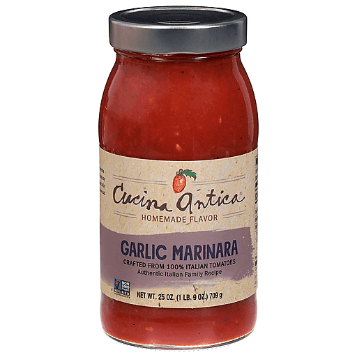 CUCINA ANTICA COOKING SAUCE, GARLIC MARINARA SAUCE IS A DELIGHTFUL ADDITION TO A VARIETY OF MEALS. MADE WITH NATURAL INGREDIENTS, CUCINA ANTICA COOKING SAUCE, GARLIC MARINARA SAUCE IS FREE OF UNNATURAL AND UNNECESSARY ADDITIVES, LEAVING THE PURE FLAVOR UNCOMPROMISED. THIS PRODUCT IS GLUTEN-FREE AND NON-GMO. EACH JAR OF CUCINA ANTICA COOKING SAUCE, GARLIC MARINARA SAUCE CONTAINS 25 OZ. OF SAUCE. REFRIGERATE AFTER OPENING. SEE NUTRITION FACTS PANEL FOR ALLERGENS.