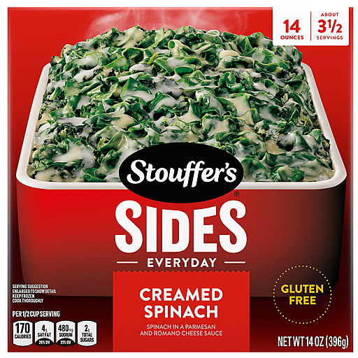Upgrade dinner when you serve Stouffer’s creamed frozen spinach, we make serving meals with delicious sides easy! Our sides are thoughtfully crafted with care and quality you can taste – Stouffer's frozen creamed spinach features spinach in a parmesan and romano cheese sauce. Whether you’re looking for family dinner ideas, or you want to share some comfort food with friends, Stouffer’s frozen creamed spinach will complement any meal you pair them with. Get creative and match your Stouffer’s sides to any protein or veggie-based main you like! With Stouffer’s cream spinach in your freezer, you’ll always be ready to serve up something delicious.