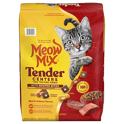 Get your cat excited for mealtime with an irresistible taste and texture mashup. Meow Mix Tender Centers Dry Cat Food with Basted Bites features two texture kibble with a meaty center surrounded by a crunchy outer layer. Along with the exciting texture combo are the delicious flavors of beef and salmon, and Basted Bites pieces that take the tastiness to a whole new level (versus the already-delicious Tender Centers Beef and Salmon Flavors). Of course, this recipe also provides the everyday nutrition your cat needs. That includes 40 essential vitamins, minerals, amino acids and fatty acids, with calcium and vitamin D to help support healthy teeth and bones. With so much goodness packed into every bite, it’s no wonder why Meow Mix cat food is The Only One Cats Ask for by Name.