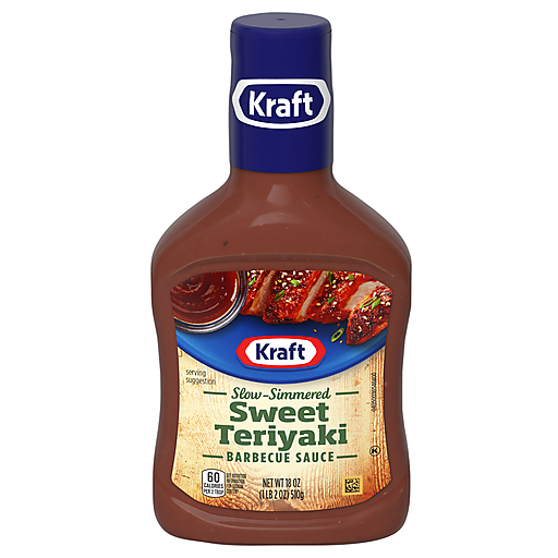 Kraft Sweet Teriyaki Slow-Simmered Barbecue Sauce and Dip adds a delicious flavor to entrees. Crafted with a variety of high-quality ingredients, our sauce blends traditional barbecue flavor with a hint of sweetness. Cook with peace of mind while using our tangy BBQ sauce, as a single serving has 0 grams of total fat, 60 calories and is great for those keeping Kosher. Natural hickory smoke flavor, pineapple juice and soy sauce combine for a superb flavor. Our teriyaki BBQ sauce lets you prepare dishes, including teriyaki ribs, teriyaki pulled pork and teriyaki chicken. Our teriyaki BBQ sauce and dip is also great as a dipping sauce for chicken tenders and vegetables. The tangy sauce comes in a plastic 18 ounce bottle with a screw top lid to preserve flavors.