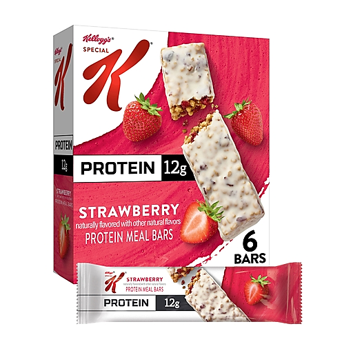 Feed your get-up-and-go with Kellogg's Special K Strawberry Protein Meal Bars made with indulgent ingredients that energize and fill you up. Creamy coating and berry-flavored fruit pieces help satisfy the tasty way. Each bar has 12g protein (23% daily value), 9g fiber (6g total fat), and six essential vitamins and minerals with an excellent source of Vitamin C. These bars are a great part of any balanced diet; Inspired by your non-stop life, individually wrapped Kellogg's Special K Protein Meal Bars are easy to stash in your work desk, tote, yoga bag, backpack, or car. Confidently move through even your busiest days with Special K Strawberry Protein Meal Bars, the delicious and filling meal replacement or snack that helps keep your routine on track.