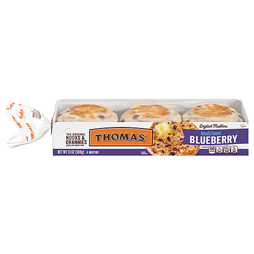 Thomas' Blueberry English Muffins have the butter pooling, Nooks & Crannies texture that you love. Simply like no other, they're baked with a great blueberry taste to create a delicious bite you can't resist. Try them today and be part of a tradition of quality that Thomas' has been proudly serving up to families like yours for more than 135 years.