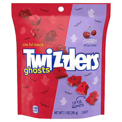 Get in the Halloween spirit with delicious TWIZZLERS Ghosts cherry flavored chewy candies! These bite size cherry flavored candies are shaped perfectly for all your Halloween celebrations and traditions. Pour these candies into a covered candy dish to enjoy all season long, while carving pumpkins or to enjoy during all your horror movie marathons. Pack some cherry flavored chewy ghosts in lunch boxes for a fun surprise or bring a bag into the office to share with co-workers. In charge of bringing a festive dessert for a Halloween party? Bake and decorate themed desserts with these tasty cherry flavored candies by placing individual ghost shaped treats on top of cupcakes and brownies for a fruity addition to your favorite recipes. You can also hand out a bag of TWIZZLERS candy as a prize for the best Halloween costume or use them to create fun goody bags with other TWIZZLERS candies. If you're in the sharing mood, pass this bag around so that everyone can enjoy some fruity bites of cherry flavored candy. As a low fat, kosher treat, TWIZZLERS Ghosts candies are a great snack for everyone and add a little extra sweetness to holiday celebrations, whether you eat them one by one or by the handful.
